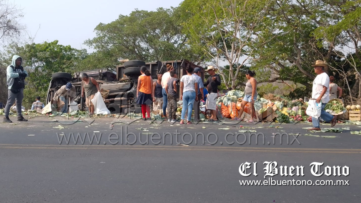 Cuitláhuac,Ver.-Al menos 3 personas lesionadas fue el saldo de la volcadura de una camioneta la cual transportaba frutas y verduras, sobre la carretera federal Cuitláhuac-La Tinaja a la altura del kilómetro 53 + 500.