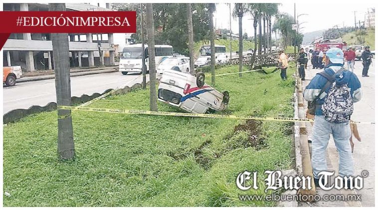 El accidente ocurrió alrededor de las 12:45 del jueves, como ha pasado incontables veces, el conductor perdió el control justo al pasar el puente del tren, a la altura de la caseta de la policía municipal. La unidad circulaba rumbo al distribuidor vial El Diamante y terminó volcada, otra más para la cuenta.