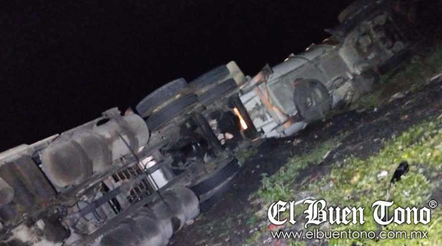 Cosamaloapan, Ver. – Una pipa cargada con gasolina se volcó esta noche en la autopista Cosamaloapan – La Tinaja, a la altura del kilómetro 0, provocando que su conductor resultara lesionado. Al lugar llegaron paramédicos de Caminos y Puentes Federales para brindarle los primeros auxilios y proceder a su traslado hacia un hospital. Personal de bomberos, así como de Protección Civil y autoridades policiacas, ya se encuentran en el lugar atendiendo la contingencia. Se prevé que la circulación permanecerá cerrada durante varias horas.