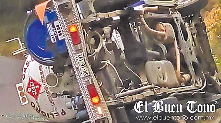Soledad Atzompa.- Una pipa cargada con gas LP volcó en la carretera que conduce a la comunidad de Mexcala, dejando daños materiales valuados en varios miles de pesos, pero sin ninguna persona lesionada.