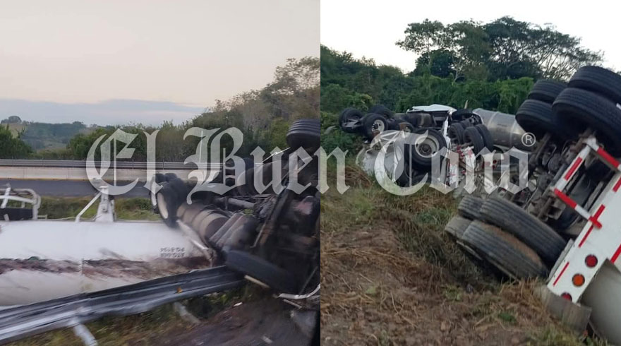 La Tinaja, Ver.-Un tractocamión con tanque, cargado con amoniaco, se volcó esta tarde de viernes a la altura del ramal en el kilómetro 0, de la autopista Córdoba -Veracruz, y La Tinaja -Cosamaloapan, dejando sólo daños materiales y la alerta a los diferentes grupos de auxilio.