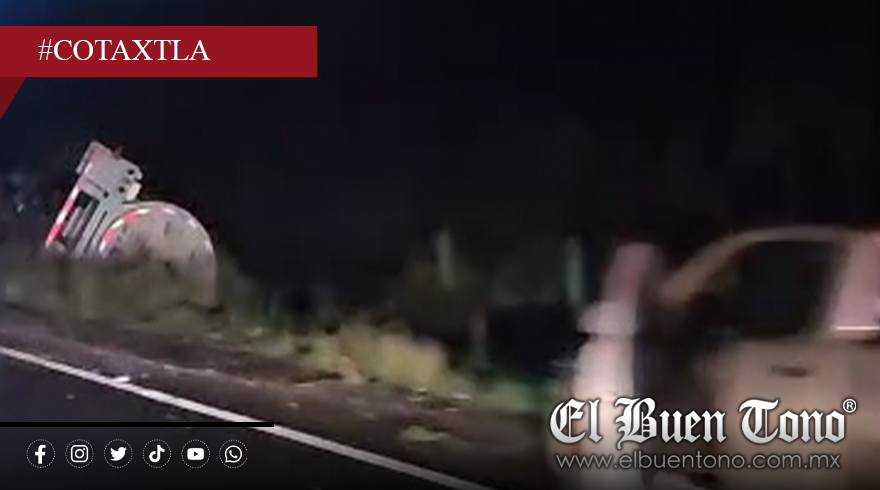 Cotaxtla, Ver.- Una pipa se salió del camino y terminó volcada esta madrugada de viernes a la altura del kilómetro 55 de la autopista Córdoba -Veracruz, tramo La Tinaja – Paso del Toro.