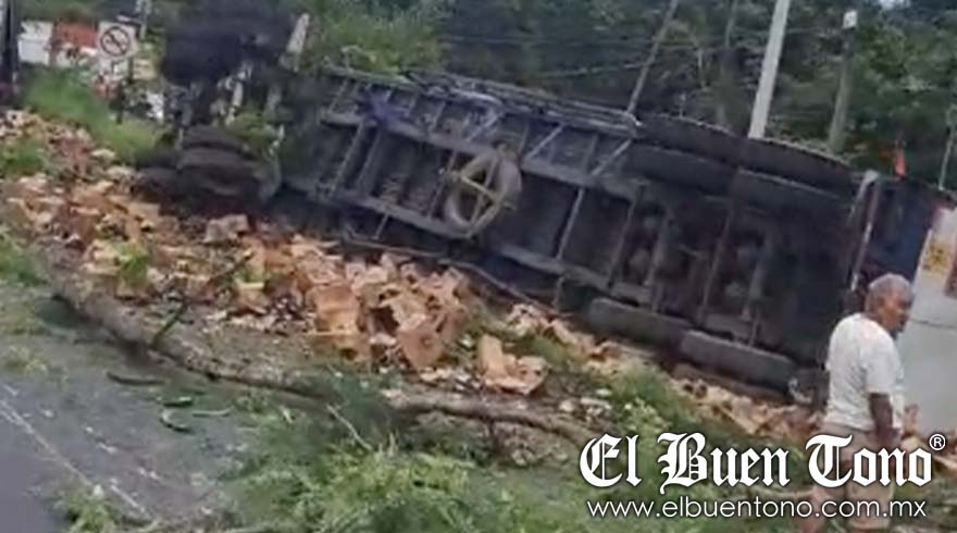 Yanga.- Un remolque que era jalado por un tráiler volcó la tarde de este martes a un costado de la carretera federal Córdoba-Veracruz, a la altura de la localidad de Los Mangos. Varias personas llegaron al lugar para robarse las cervezas que quedaron intactas, afectando más el tráfico en la zona. Al lugar arribaron elementos de la Policía Municipal, así como de la Guardia Nacional de Carreteras y Protección Civil de Yanga, quienes brindaron apoyo.