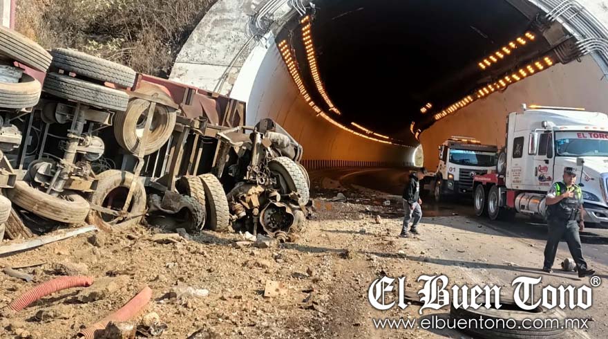 Maltrata, Ver.- Un tractocamión doblemente articulado volcó sobre su lado derecho cuando salía del segundo túnel en la autopista Puebla-Veracruz a la altura del kilómetro 231 del tramo Esperanza-Ciudad Mendoza. Debido al incidente, la circulación hacia el sureste del país se mantiene bloqueada debido a las maniobras que se realizan para retirar la pesada unidad.