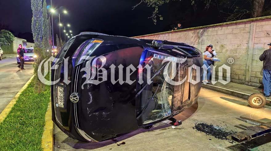 Orizaba.– Un automóvil conducido por una mujer volcó la noche de este sábado sobre el Boulevard 20 de Noviembre, en la colonia Barrio Nuevo.