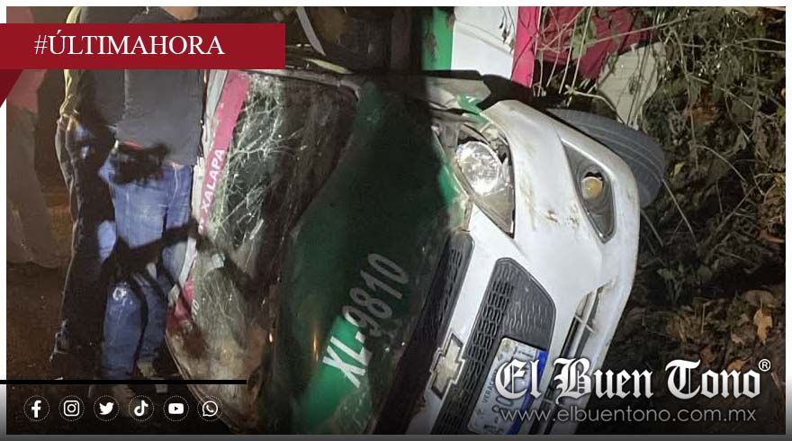 Alto Lucero, Ver.— La noche de este sábado 21 de febrero se registró la volcadura de un taxi sobre la carretera que comunica la localidad de El Castillo con el municipio de Alto Lucero, a la altura de las pronunciadas curvas de la colonia 6 de Enero, lo que generó la movilización de corporaciones de auxilio y seguridad.