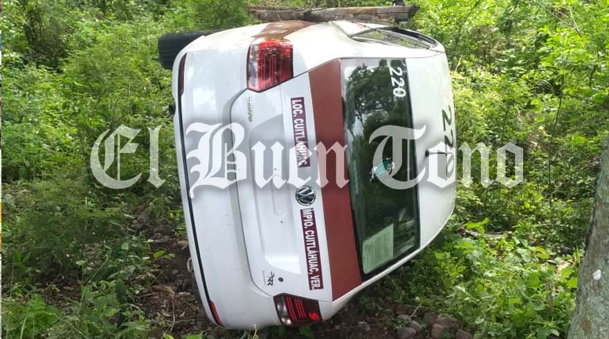 Omealca, Ver.- El conductor del taxi número 220 del municipio de Cuitláhuac, término volcado y apunto de caer al voladero, al momento de que perdió el control cuando circulaba presuntamente a exceso de velocidad sobre la carretera estatal La Quebradora-Bajo Grande, teniendo que arribar grupos de auxilio así como también elementos de la Policía Municipal y Tránsito Estatal que llegaron para tomar conocimiento.