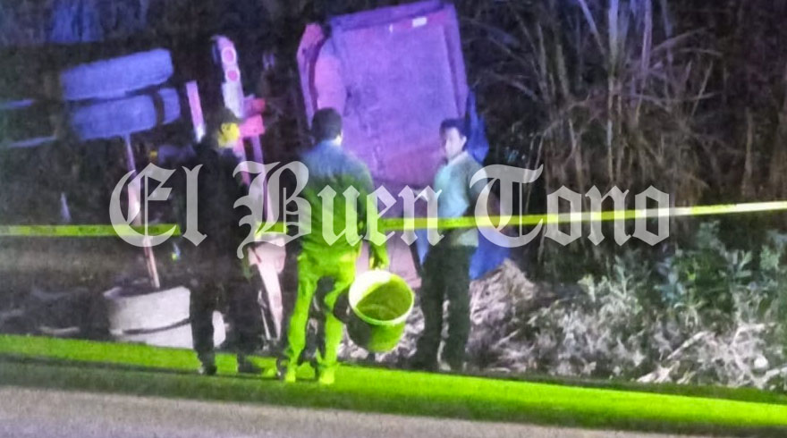 Cuitláhuac.- Daños materiales y la obstrucción del flujo vehicular fue lo que dejó la volcadura de un tractocamión tipo tolva doble remolque, cargado con al menos 90 toneladas de azúcar mascabado, el cual volcó la noche de este sábado cuando circulaba sobre la carretera Estatal Yanga-Omealca, a la altura de San José de abajo. Fue tras una falla mecánica que el conductor perdió el control de la pesada unidad para quedar volcado. Al lugar arribaron policías Municipales así como Bomberos del municipio de Cuitláhuac, quienes abanderaron el área. Este percance por fortuna no dejó personas lesionadas, al lugar arribaron habitantes de la zona, quiénes con costales, cubetas y hasta en camionetas robaron el azúcar mascabado el cual aún no es apto para el consumo humano. De los hechos tomó conocimiento el perito en turno de Tránsito Estatal.