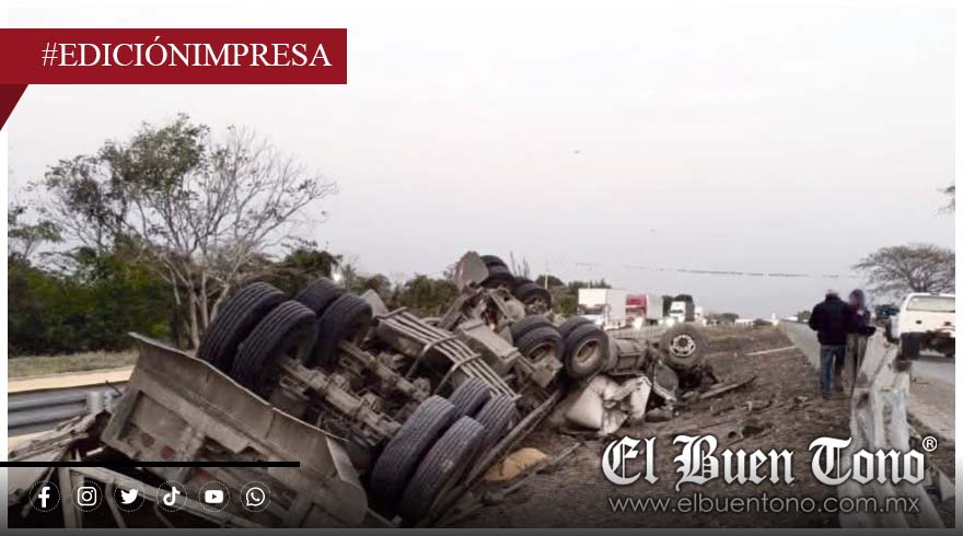 Carrillo Puerto.- Un tráiler tipo tolva que transportaba varias toneladas de maíz volcó en la autopista Córdoba – Veracruz, a la altura de la localidad de Arroyo Azul.