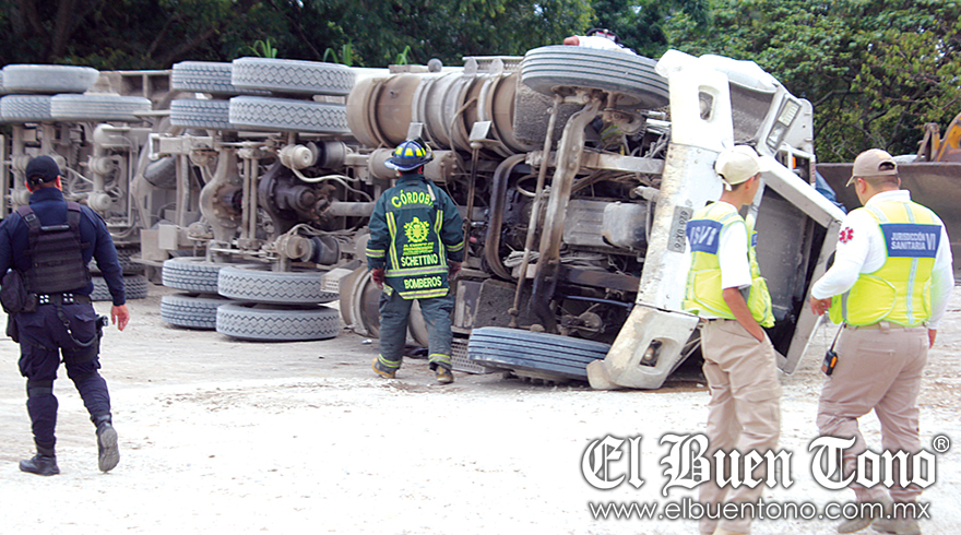 Córdoba.- Una tolva que transportaba piedra, se volcó la tarde de ayer en un terreno ubicado a orilla de bulevar Tratados de Córdoba, debido al exceso de peso.