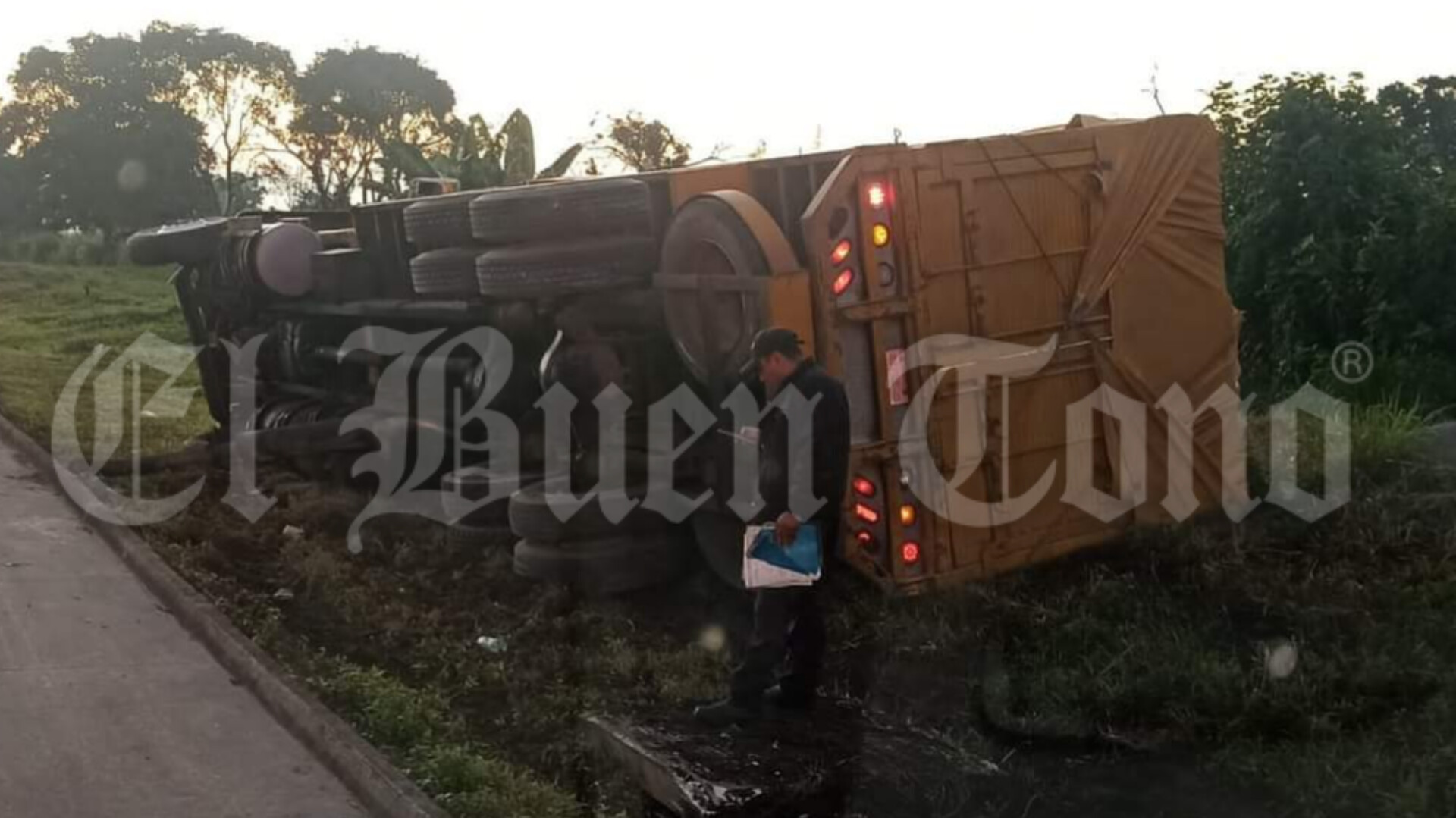 Amatlán. – Un camión tipo torton, volcó la mañana de este miércoles a un costado de la autopista Córdoba-Veracruz, luego de que el conductor perdiera el control y se saliera de la vialidad, a la altura de Rancho Trejo.