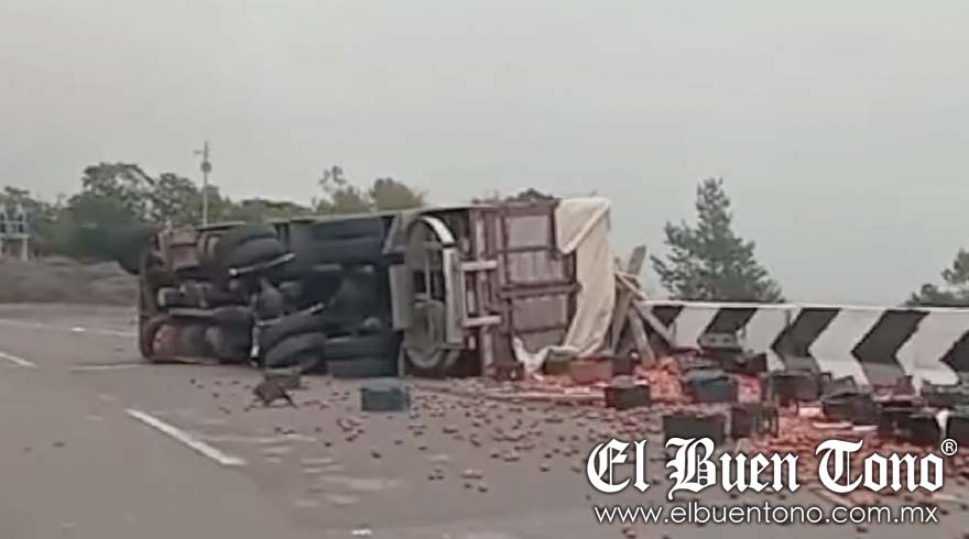 La carga quedó esparcida sobre la carpeta asfáltica, y el único carril efectivo para circular fue el de alta. Cuerpos de emergencia y seguridad acudieron para atender la situación.