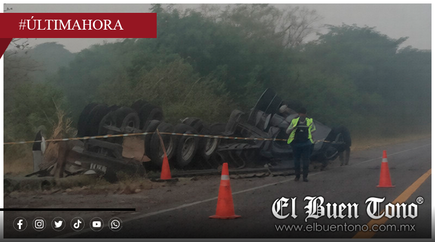 Tinaja.- La mañana de este miércoles se registró un aparatoso accidente sobre la carretera Paso del Toro – La Tinaja, a la altura de Laguna del Roble, cuando un tractocamión perdió el control y volcó.