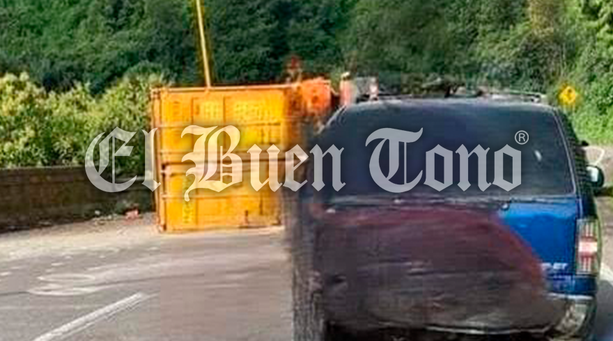 Maltrata, Ver.- Sobre la autopista 150 D Ciudad Mendoza-Esperanza de registró la volcadura de un tráiler, por lo que se interrumpió la circulación de manera parcial.