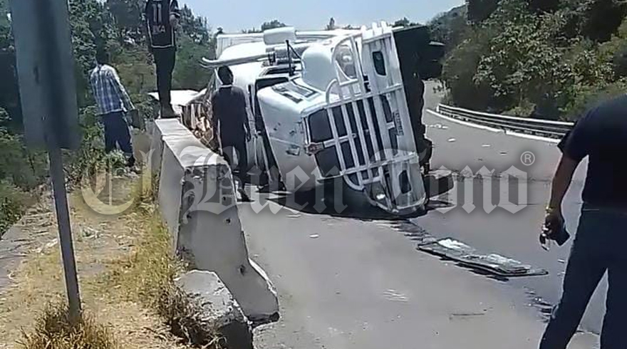 Maltrata, Ver.- Un tracto camión de carga pesada volcó la tarde de este domingo en el kilómetro 228 de la autopista 150 D del tramo Esperanza, Puebla con dirección a Veracruz.