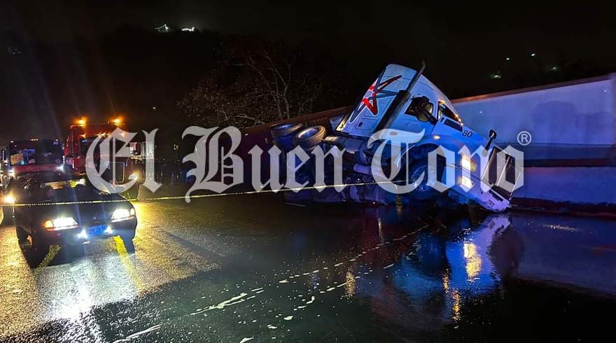 Nogales. – Un tráiler volcó la noche de este sábado sobre la autopista Puebla-Orizaba, a la altura de la Laguna de Nogales. La circulación fue cerrada en su totalidad por más de una hora debido al derrame de diésel y a las maniobras que realizaron las grúas para retirar la unidad accidentada.