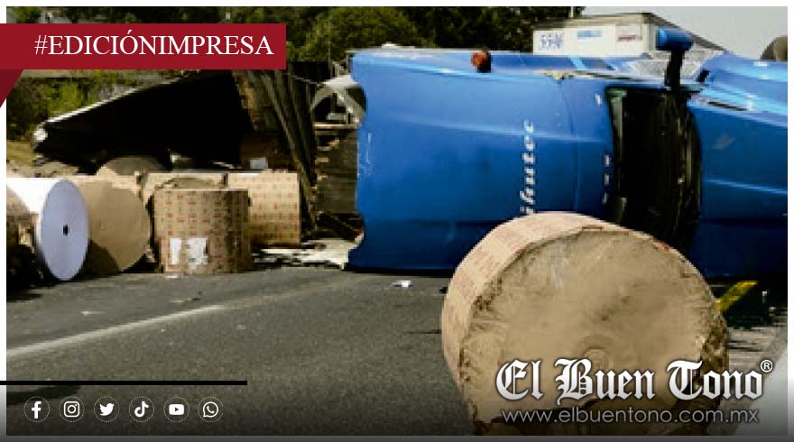 ESPERANZA.- Un tráiler cargado con bobinas de papel volcó en la autopista Orizaba-Puebla, causando daños materiales considerables y el cierre total de la circulación en ambos sentidos.
