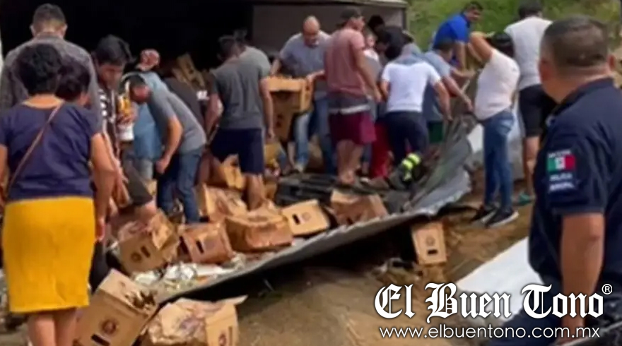 Veracruz.- Un tráiler cargado con cervezas volcó sobre la autopista Veracruz-Coatzacoalcos, a la altura del municipio de Cosoleacaque, y la población incurrió en actos de robo.