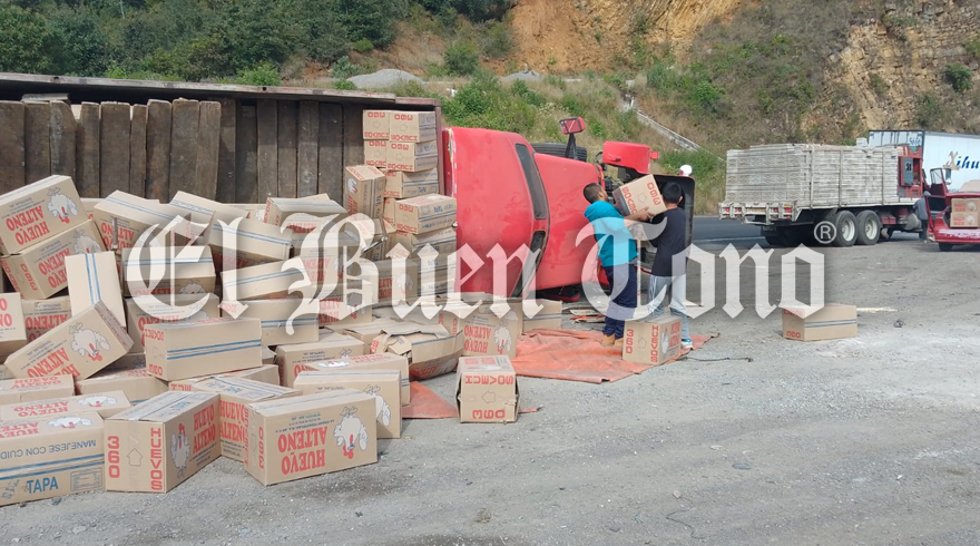 Maltrata.- La volcadura de un tráiler que iba cargado con toneladas de huevo, se registró el día de hoy sobre la autopista Puebla-Córdoba, a la altura del tramo carretero de Cumbres de Maltrata.