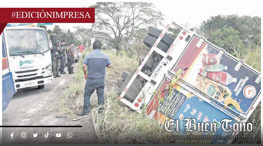 Amatlán. – Un tráiler tipo caja, cargado con jugos, se volcó la tarde de ayer martes en la carretera federal Córdoba–Veracruz, a la altura de Rancho Trejo, saliendo de la autopista.