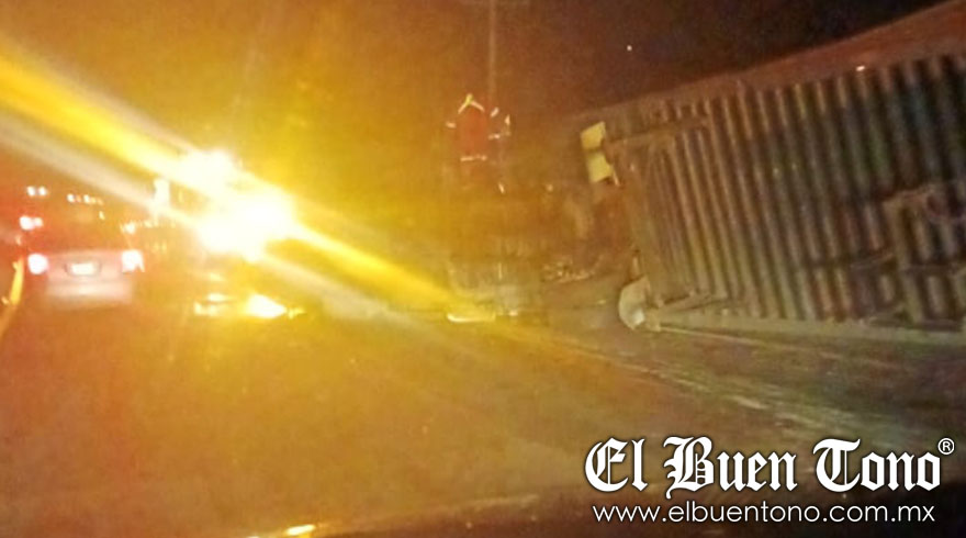 El incidente ocurrió alrededor de las 21:30 horas de ayer en el carril con dirección a Veracruz, cuando el tráiler doble caja seca cargado con electrónica y línea blanca se quedó sin frenos y se recostó sobre el muro de contención.