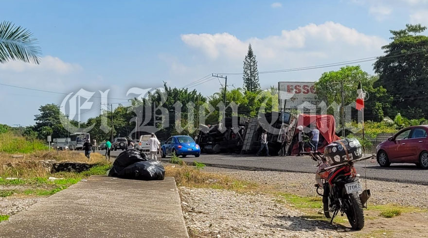 Yanga, Ver.- Un tráiler con mercancía diversa se volcó durante la tarde de este domingo, en la carretera federal Córdoba -Veracruz, a la altura de la comunidad Mesillas.
