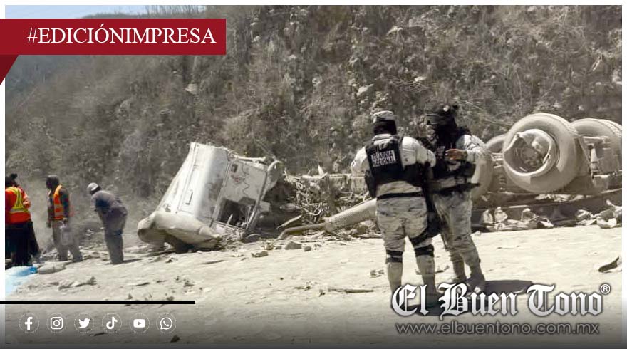 REGIÓN.- Un tráiler cargado de bultos de cemento chocó contra el cerro y volcó, al mismo tiempo que una nodriza lo impactara por alcance, al bajar las cumbres de Maltrata.