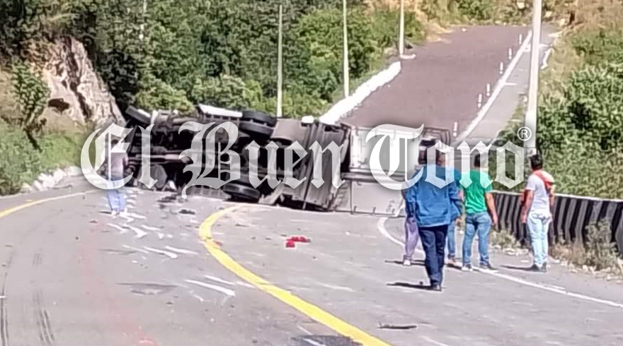 Maltrata.- Un tráiler acoplado a una caja seca, volcó sobre la autopista en el tramo Puebla-Veracruz antes de llegar a la primera rampa de emergencia.