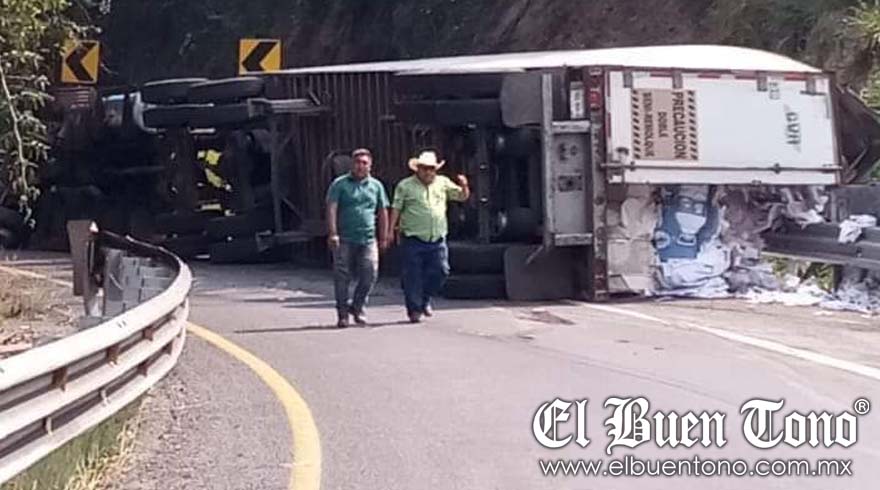 La Tinaja, Ver.- Un tráiler se volcó durante la tarde de este viernes a la altura del kilómetro 45 de la autopista La Tinaja – Cosamaloapan. El accidente originó la movilización de paramédicos de Caminos y Puentes Federales para brindarle el auxilio y apoyo necesario al operador. Oficiales de la Guardia Nacional llegaron para tomar conocimiento.