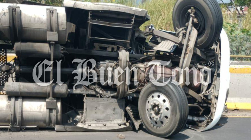 Nogales.- El conductor de un tractocamión perdió el control de éste y volcó mientras transitaba sobre la autopista Puebla-Córdoba, justo en la curva de la laguna de Nogales.