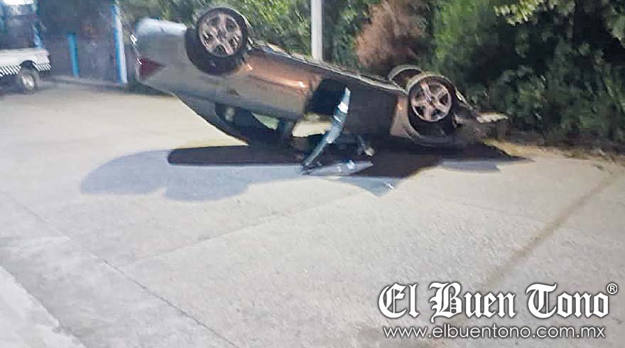 El accidente ocurrió alrededor de las 22:30 horas, cuando un vehículo gris se desplazaba hacia el centro de este municipio, pero al parecer tomó una curva a alta velocidad, lo que provocó que el conductor perdiera el control del volante y volcara, quedando con las llantas hacia arriba.