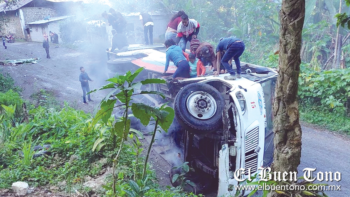 COETZALA.- Un autobús que circulaba por la carretera Coetzala-Tezizapa hacia Córdoba, volcó y dejó a 10 personas heridas, la mañana de este miércoles.