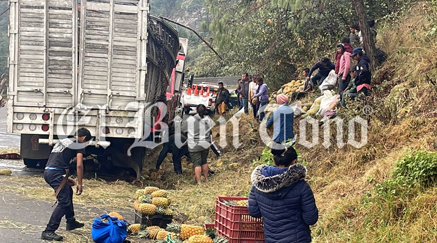 Fue a la altura del kilómetro 231 que el camión que transportaba piñas volcó en el lugar antes señalado, pero afortunadamente no se registraron personas lesionadas en el percance vial, siendo únicamente los daños materiales lo cuantificado.