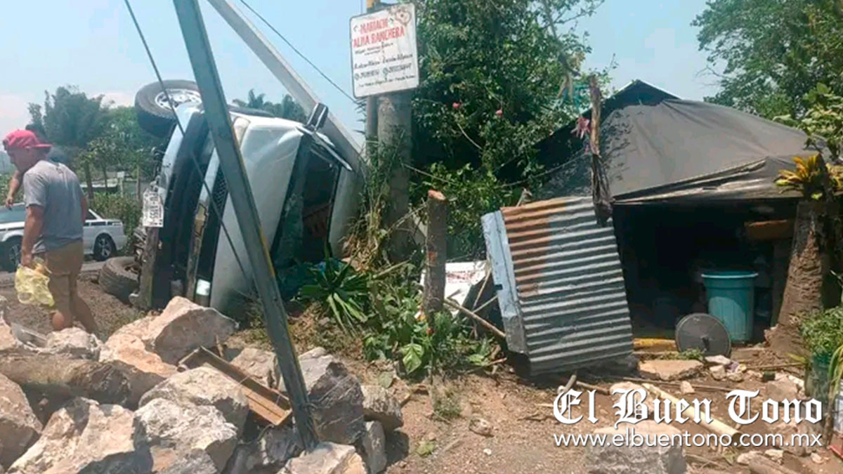 Chocamán.- Los ocupantes de una camioneta Chevrolet resultaron lesionados, debido a que la unidad terminó volcada y estuvo a punto de meterse a una vivienda; sin embargo, quedó incrustada contra un poste de concreto, al perder el control cuando circulaba sobre la carretera federal Fortín-Huatusco, a la altura de la barranca de Chocamán.