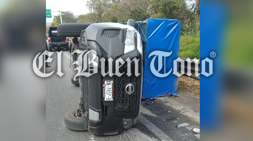 Río Blanco.- Una camioneta volcó a la altura del panteón municipal, sobre el kilómetro 265, ruta Veracruz-Puebla, hoy por la mañana.