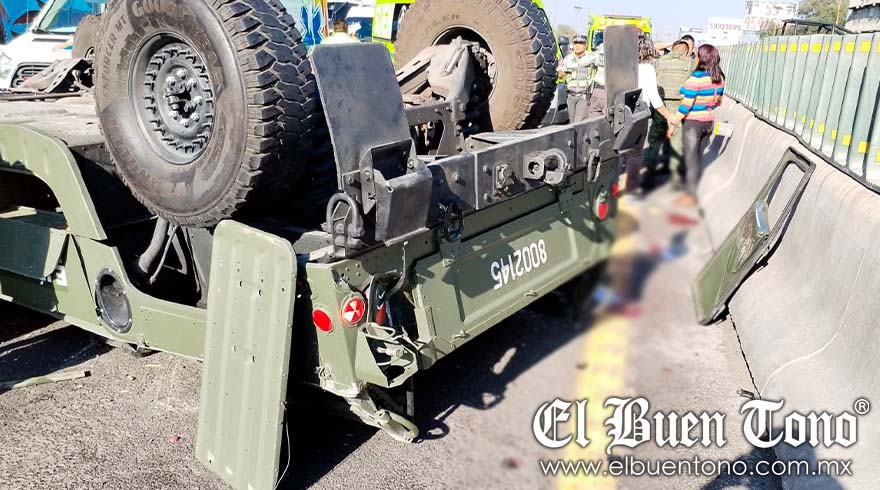 CDMX.- Un vehículo del Ejército Mexicano volcó la mañana de ayer en la carretera México-Pachuca, específicamente a la altura del Gallo en el municipio de Ecatepec, en dirección a la Ciudad de México (CDMX). Se reportan varios heridos como consecuencia del incidente.