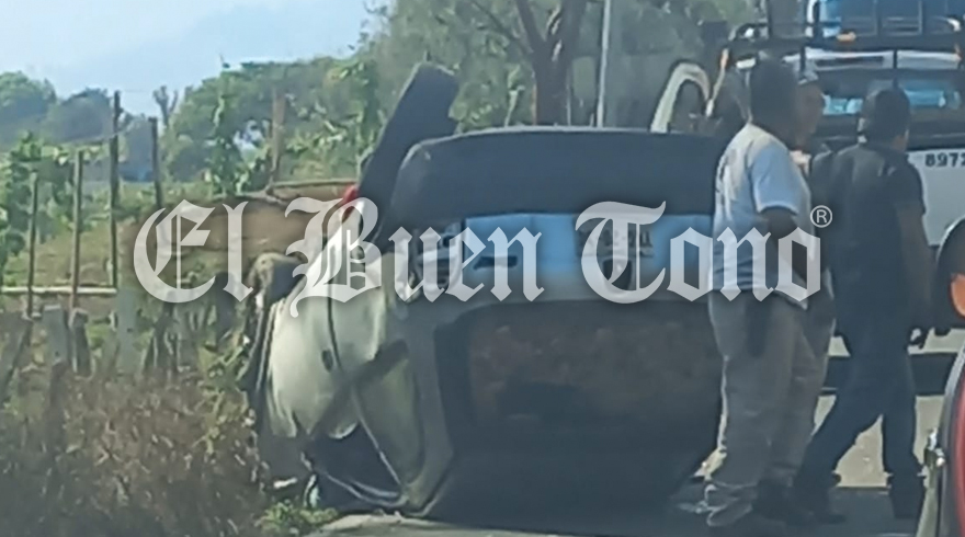 COSCOMATEPEC.- La volcadura de un vehículo particular se registró la tarde de este miércoles arrojando solo daños materiales, el conductor resultó con lesiones que no pusieron en riesgo su integridad, grupos de emergencia acudieron al lugar para apoyar con el tráfico vehicular.