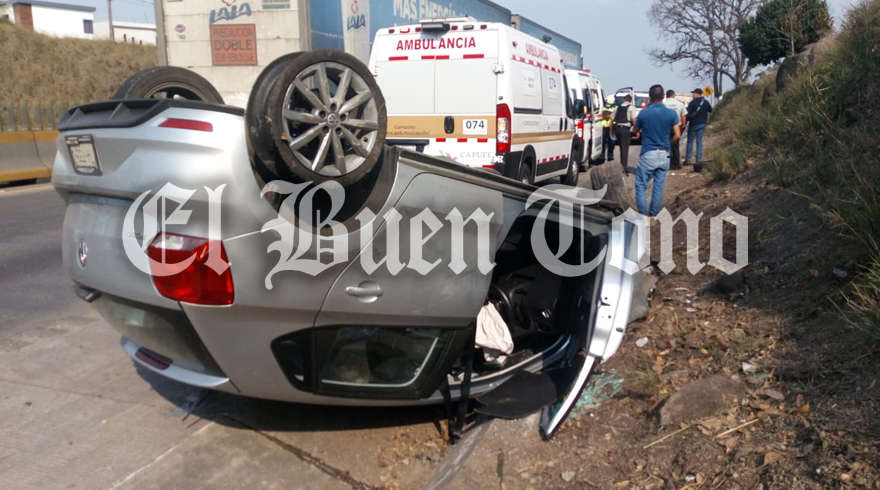 Amatlán.- Una joven mujer resultó ilesa luego de que su vehículo Volkswagen Gol que conducía, terminó volcado tras estallarle un neumático cuando circulaba sobre el kilómetro 299+240 de la autopista México- Veracruz, a la altura del trébol de Rancho Trejo. El accidente movilizó a los grupos de auxilio, así como elementos de la Guardia Nacional que llegaron para tomar conocimiento.