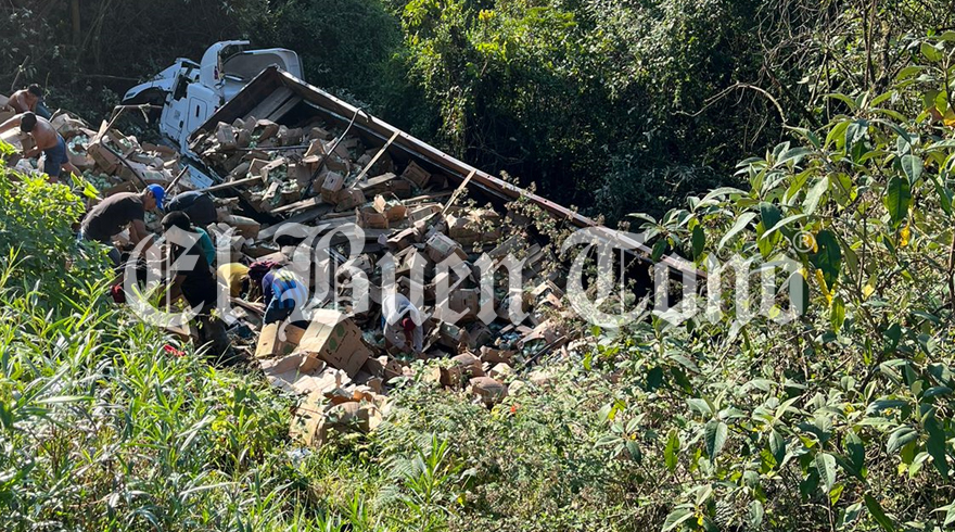 Sobre las causas del accidente aún se desconocen; sin embargo, se presume que habría sido una falla en los frenos lo que provocó que el chofer perdiera el control del volante y cayera al barranco; como era de esperarse, la gente ratera hizo de las suyas y se robó parte de la mercancía.