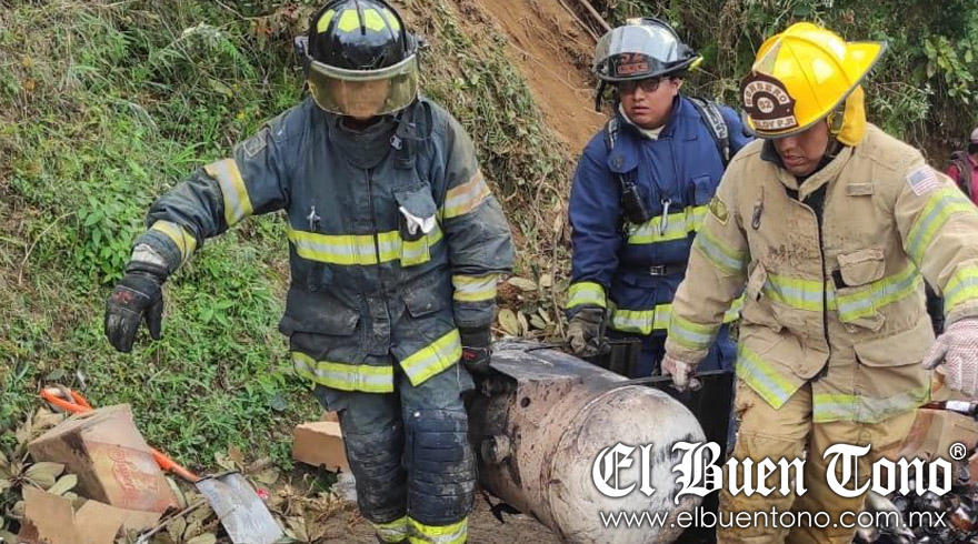 En tanto, su hijo salió ileso, posteriormente fueron trasladados a un hospital de la zona para recibir atención médica, finalmente los tragahumo retiraron el tanque de gas de la zona y se hicieron las maniobras para ver si había mercancía y la chatarra en la que terminó reducido el vehículo.