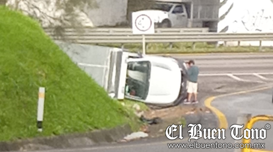 Asimismo en el trébol de Escamela se registró la volcadura de otra camioneta, la cual quedó recostada en el acotamiento.