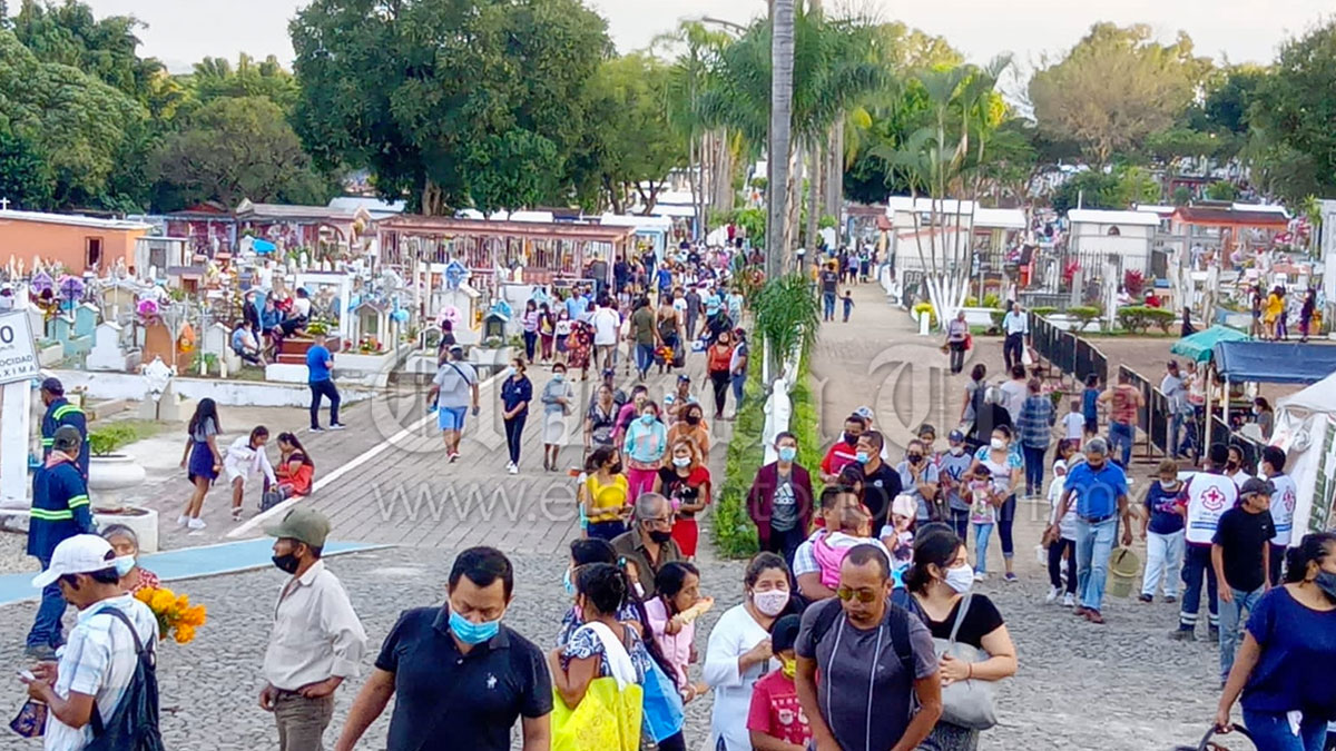 es cuando la afluencia de personas fue mayor. Respetando las normas de bioseguridad para ingresar al camposanto, los deudos se esparcían entre los pasillos en busca de sus familiares, los rollos de flor de muerto y moco de pavo bajo el brazo no podían faltar, las veladoras y el copal también adornaron el lugar como es costumbre llenándolo de color y vida, como en días de antaño.