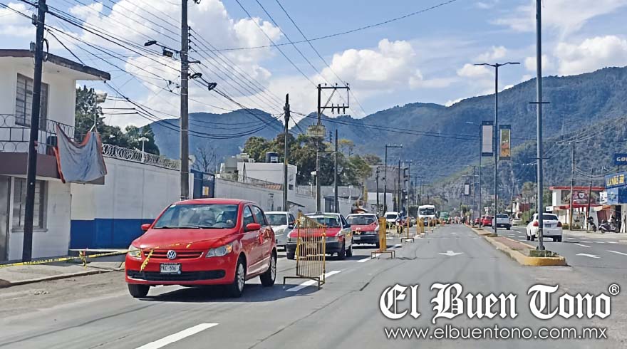 Río Blanco.- Los trabajos de balizamiento que realizó personal del Ayuntamiento en Camino Nacional durante las horas pico, generó ayer un desorden en la movilidad cotidiana de los ciudadanos por la vía de comunicación.
