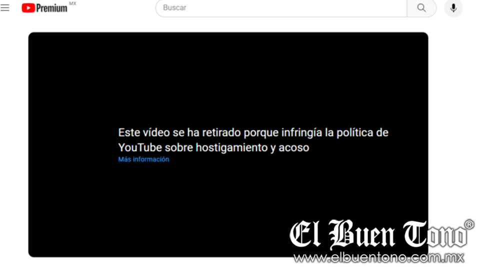 El video eliminado por YouTube incluye un enlace que dirige a las políticas de la plataforma, donde se detalla qué contenido está prohibido de difundir, incluyendo la publicación de datos personales con el fin de acosar o molestar a una persona.